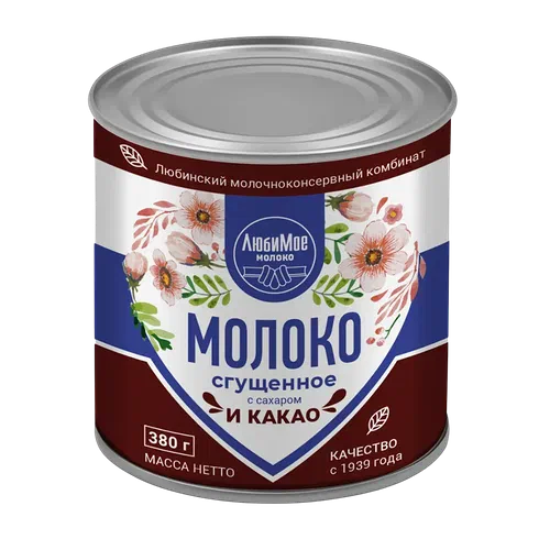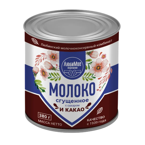 Любимое шекер жана какао коюлтулган сүтү 8,5% 380г БЗМЖ