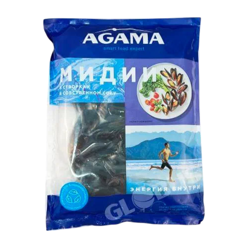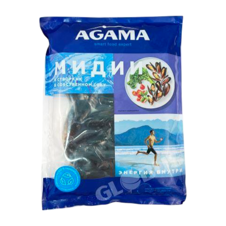 Мидии Agama в створках в собств. соку в/м 450г