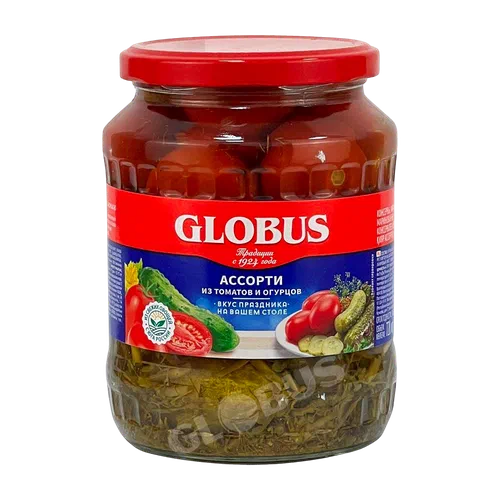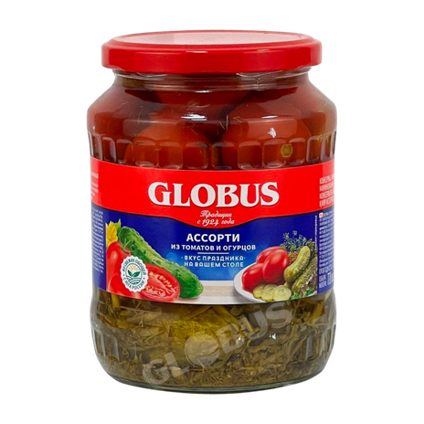 Ассорти овощн. Globus марин. /огурцы/томаты/ 720г ст/б