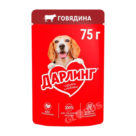 Корм Darling д/собак говядина в подливе 75г