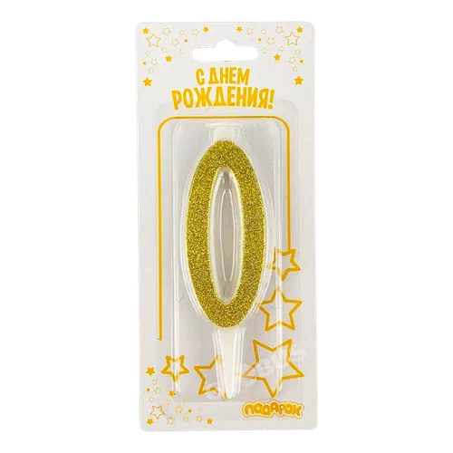 Свеча д/торта цифра Золото 10см №0