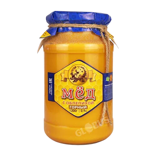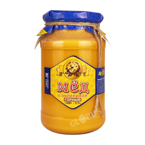 Мёд Пасеки Киргизии горный с облепихой 1,2кг ст/б Медовая Артель